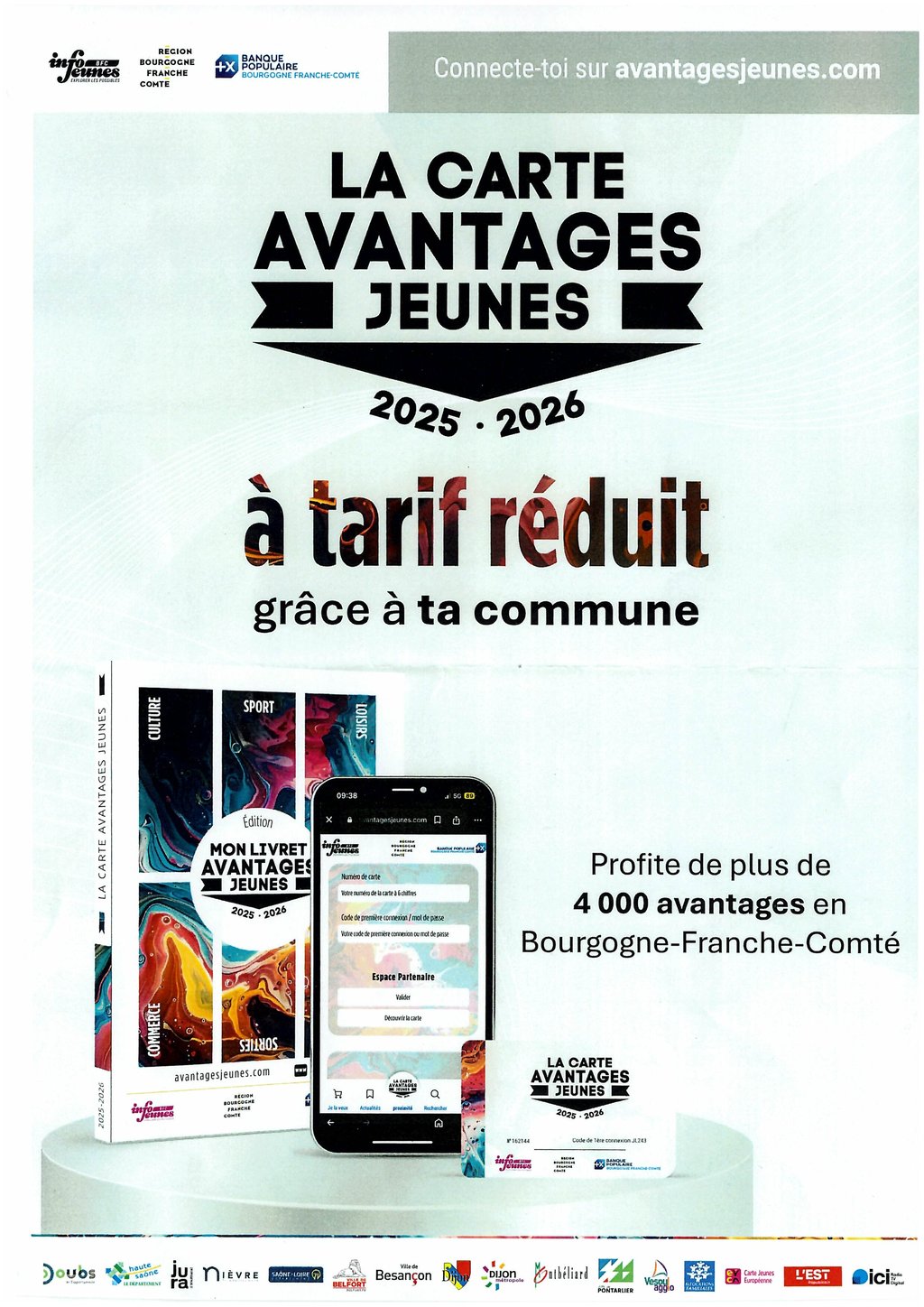 Les cartes avantages jeunes seront disponibles en mairie à compter du lundi er septembre aux heures d'ouverture.